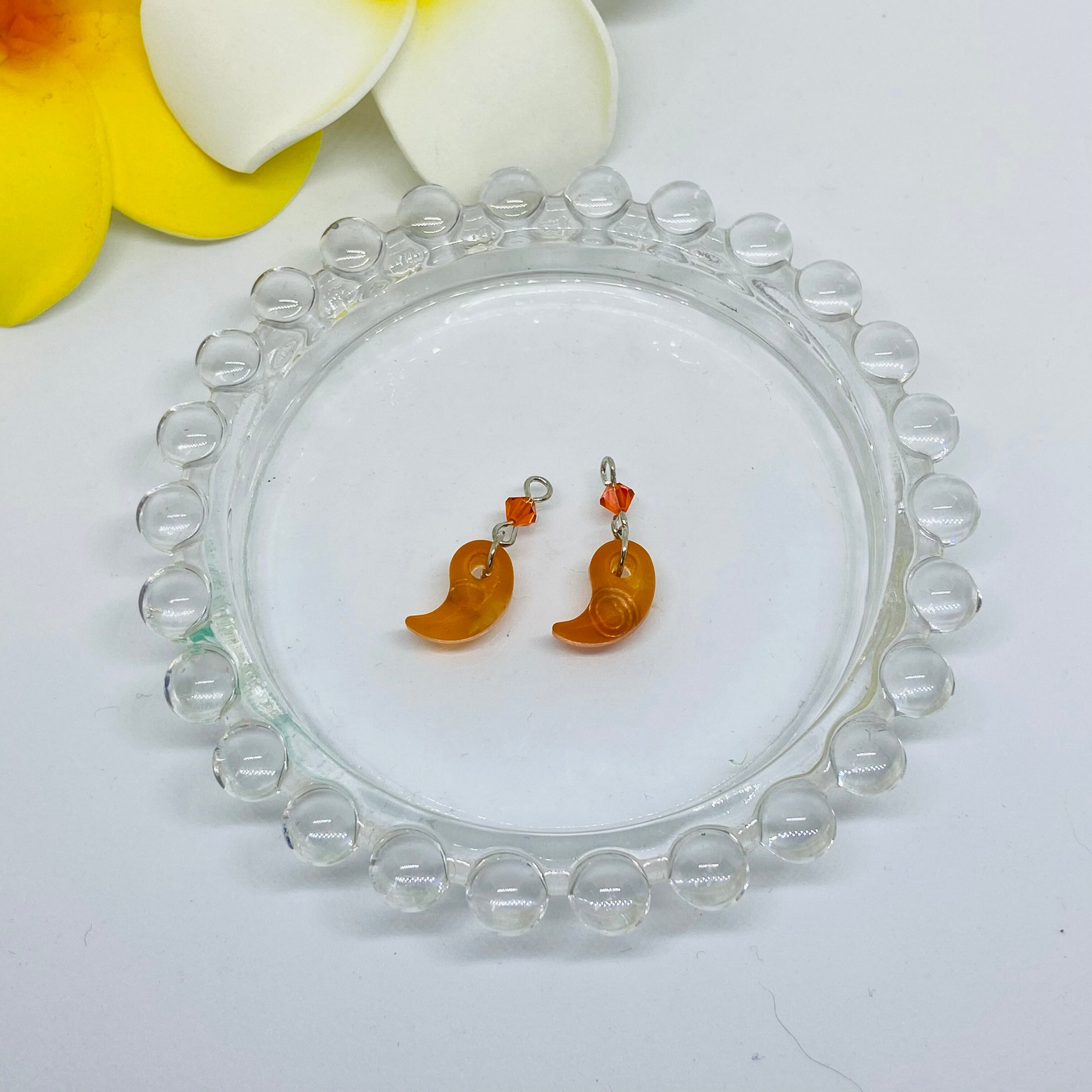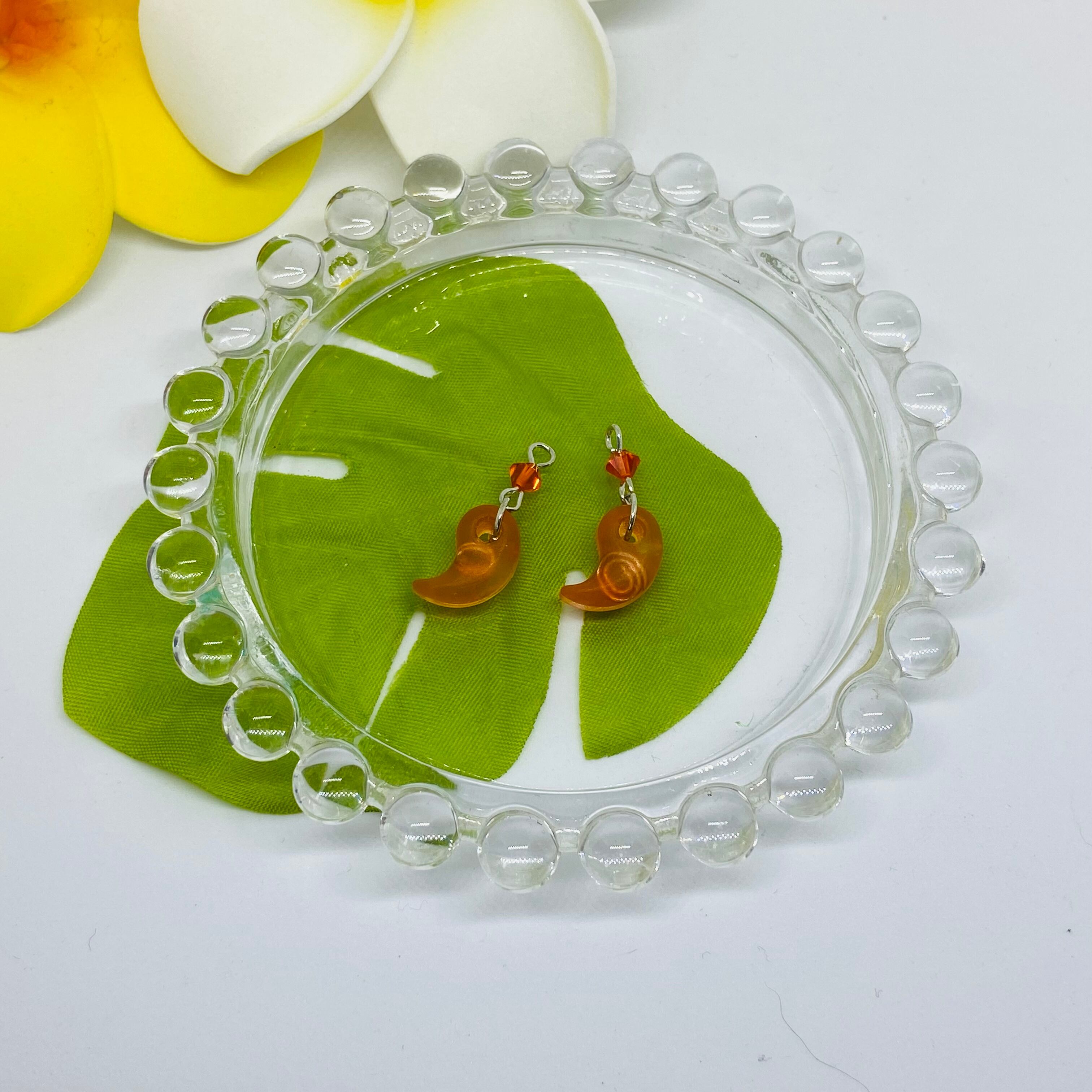 勾玉オルゴナイト・ピアス・オレンジ